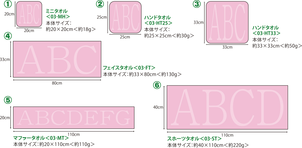 | 6.スポーツタオル 個別PP袋入り 約40×110cm | ||